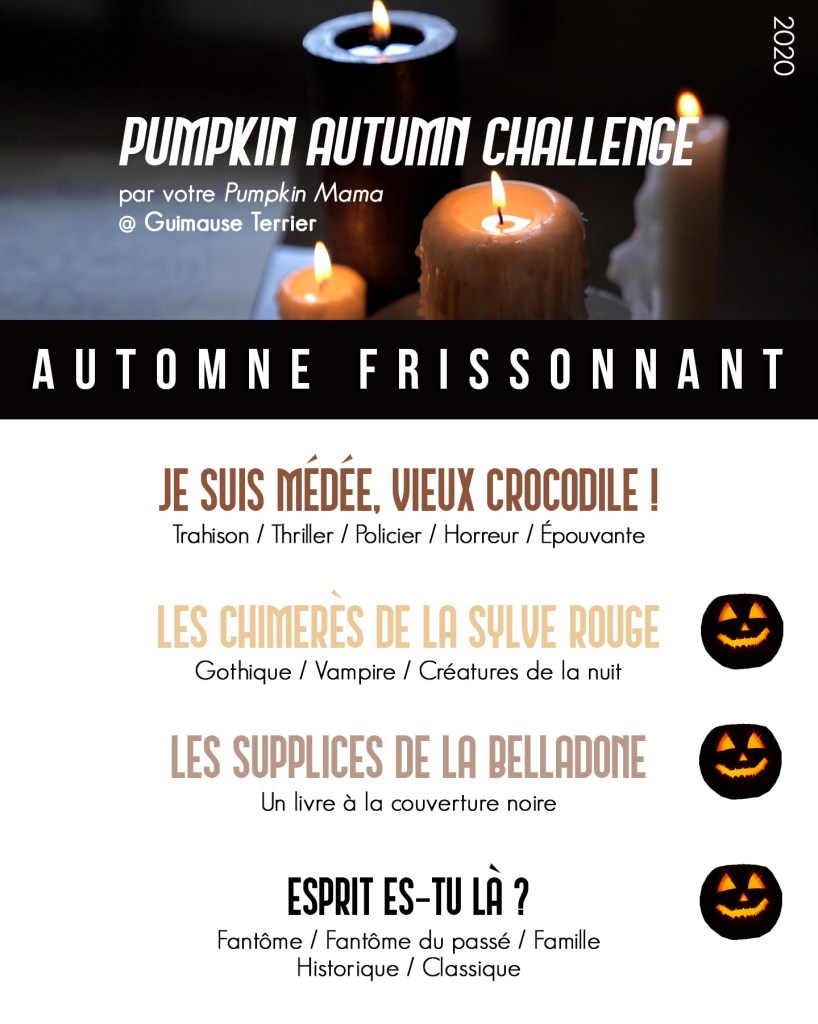 Les challenges littéraires sont parfois la solution pour faire des découvertes livresques. D’autres fois, il s’agit de liquider bon nombre de livres de sa Pile À Lire. On peut même y voir l’occasion de se surpasser en nombre de lectures. Et là, pour moi, c’était les trois à la fois. Vous l’aurez peut-être deviné : cette année, j’ai réussi mon #pumpkinautomnchallenge ! Et je suis super méga contente, parce que j’ai galéré l’année passée à lire quatre pauvres bouquins en trois mois…